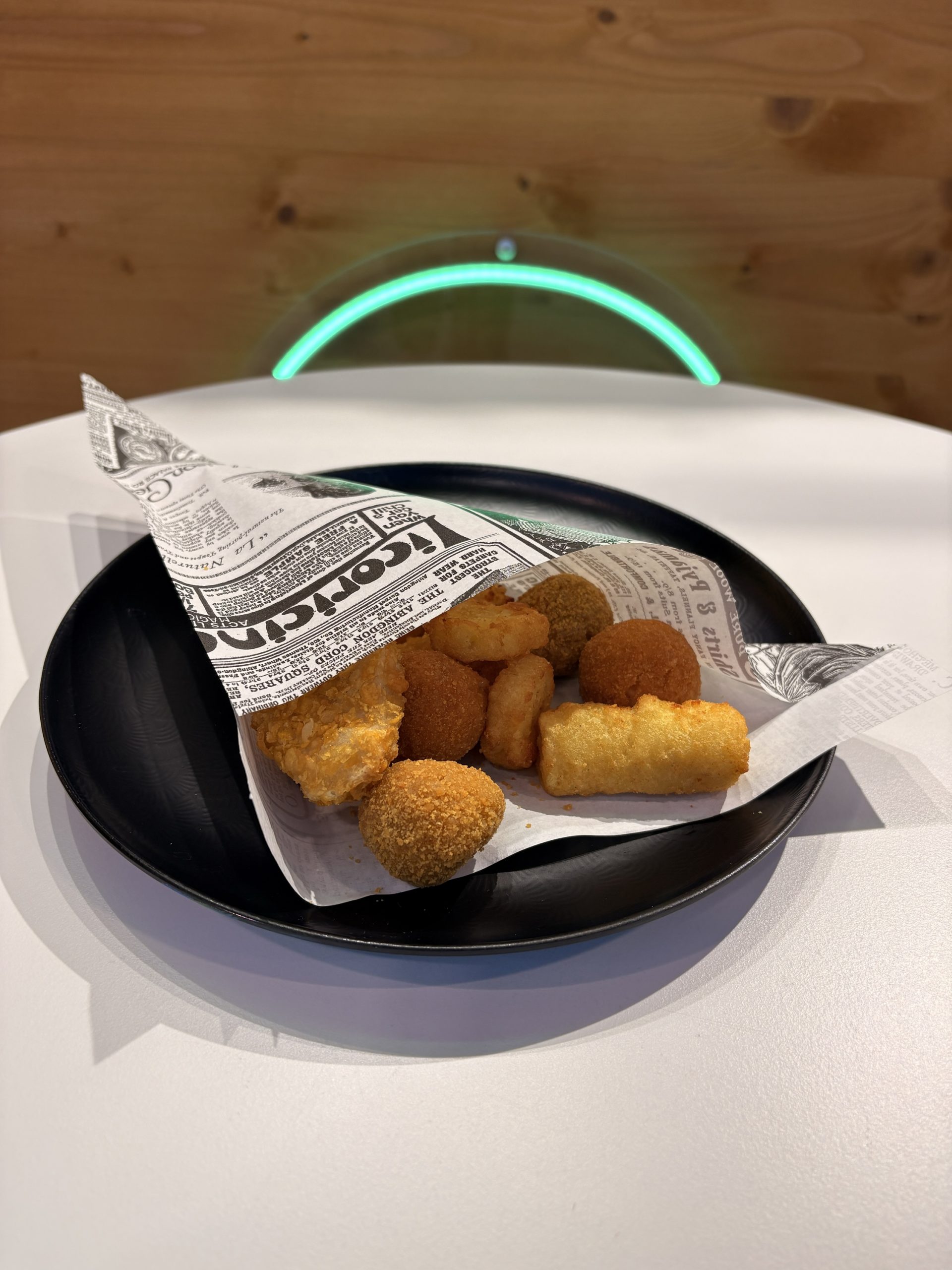 Mix di olive all’ascolana, crocchette di patate, arancini al sugo mignon, chicken nuggets croccanti, mini rösti di patate.